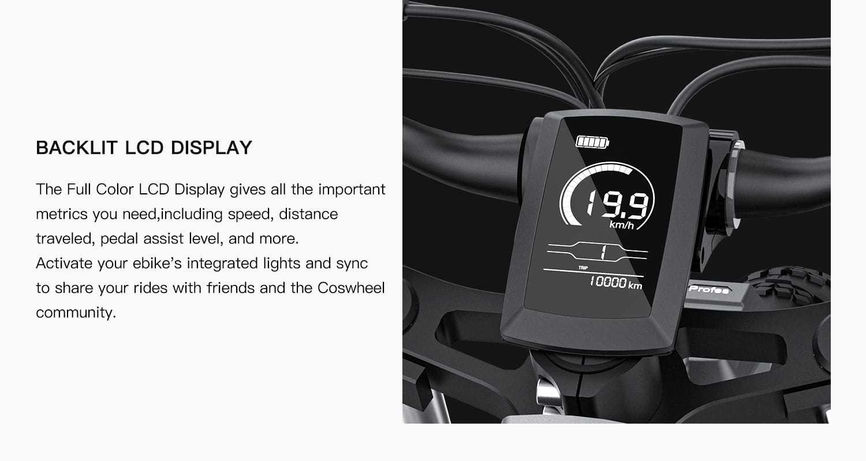 La bici elettrica Coswheel da 26 pollici è un'ottima scelta per il ciclismo fuoristrada in eBike. Che tu voglia esplorare i sentieri locali o fare una gita in campeggio nel fine settimana, questa bici è all'altezza della sfida. Dotata di pneumatici grassi, l'eBike T26 garantisce trazione e stabilità superiori su varie superfici, rendendola la compagna perfetta per l'esplorazione fuoristrada. Gli pneumatici larghi e robusti aderiscono saldamente al terreno, consentendo di affrontare in modo efficiente terreni irregolari, sentieri sabbiosi e percorsi rocciosi. Prova una guida fluida e controllata, anche nelle condizioni fuoristrada più impegnative.